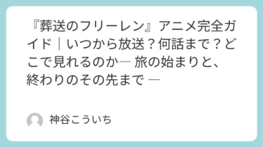『葬送のフリーレン』アニメ完全ガイド|いつから放送?何話まで?どこで見れるのか― 旅の始まりと、終わりのその先まで ―